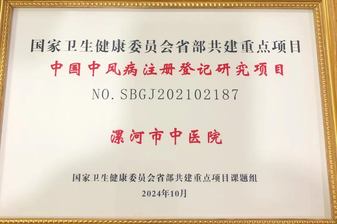 近日,漯河市中醫院被榮幸選拔為國家衛生健康委員會省部共建重點項目課題組協助單位,首次參與了中國中風病注冊登記研究項目。