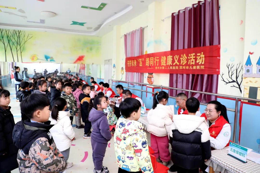 現場義診氣氛熱烈,市兒童醫療中心副主任、市二院小兒呼吸科主任郭先鋒,小兒外科主任王松陽、小兒心血管神經內科主任時雨、小兒消化腎病內分泌科副主任郭愛紅、兒童康復科副主任孫旭紅、新生兒重癥監護室(NICU)主任祁亞平、小兒眼科主任李立、口腔科副主任郭俊磊、兒童保健科副主任李錦璐、口腔科護士長周翔等專家們耐心地為孩子們進行檢查,主要包括測量身高體重及生長發育評估、心肺聽診、口腔健康及視力篩查等項目,并針對個體情況進行分析評價,向老師反饋個別孩子的相關問題,更好地保障孩子們的健康。