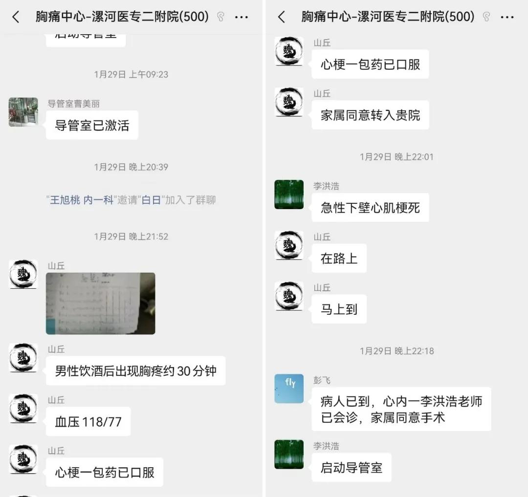 1月29日,正值大年初一,當晚9點52分,漯河醫專二附院胸痛中心工作群內接到信息,“一位男性患者飲酒后出現胸疼約30分鐘”。