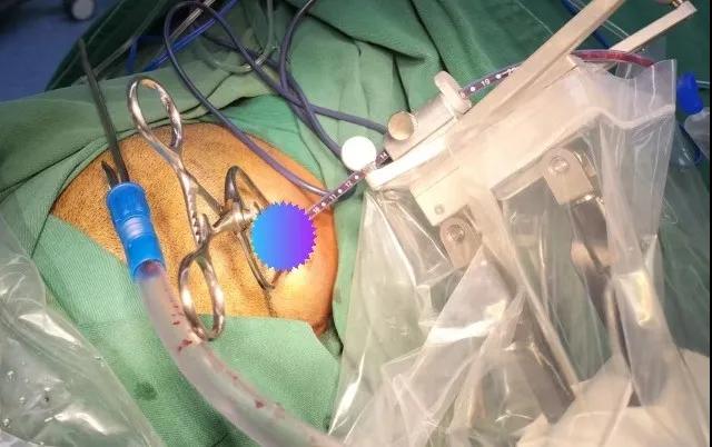 考慮保守治療效果不佳,傳統(tǒng)手術(shù)開顱清除血腫,風險高,預后不良,建議微創(chuàng)治療。但微創(chuàng)穿刺引流存在定位困難,穿刺失敗幾率高。經(jīng)神經(jīng)外科團隊討論,與患者家屬溝通病情,決定應用神經(jīng)外科機器人導航系統(tǒng)對血腫定位穿刺。