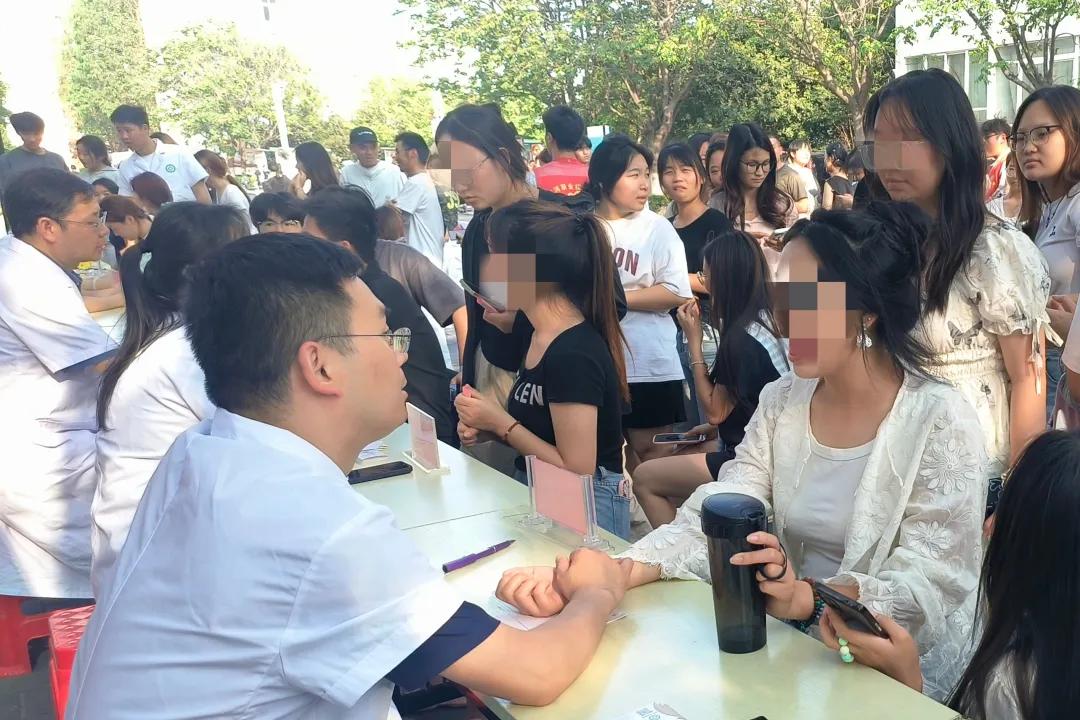 活動(dòng)當(dāng)天,市中醫(yī)院義診團(tuán)隊(duì)匯聚中醫(yī)內(nèi)科、皮膚科、口腔科、男性科、乳腺婦科、針灸推拿科以及中醫(yī)特色療法等多科專家到場(chǎng),活動(dòng)現(xiàn)場(chǎng)人頭攢動(dòng),每個(gè)科室前都排起了長(zhǎng)隊(duì)。專家們耐心細(xì)致地詢問(wèn)病史、查體、開(kāi)具處方,現(xiàn)場(chǎng)解答了師生們的疑問(wèn),并傳授中醫(yī)養(yǎng)生和保健的知識(shí)。