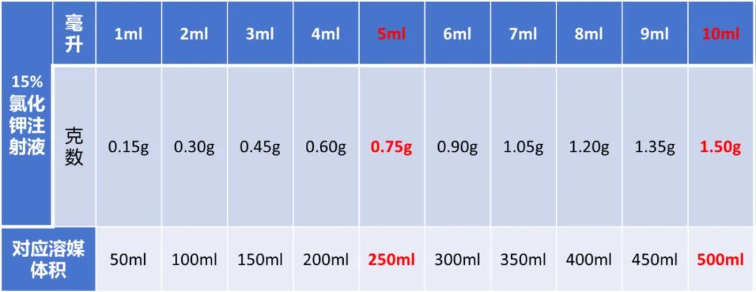 新規格風險點:15%氯化鉀每支含鉀20.1mmol,需嚴格計算溶媒中最大加入量;