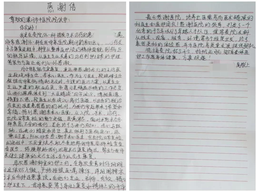 近日,漯河市中醫院外一科病房里,患者家屬手捧鮮花,帶著錦旗與感謝信,向醫護團隊深情致謝。這份跨越五年的感恩,承載著一段醫患攜手戰勝病魔的動人故事。