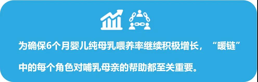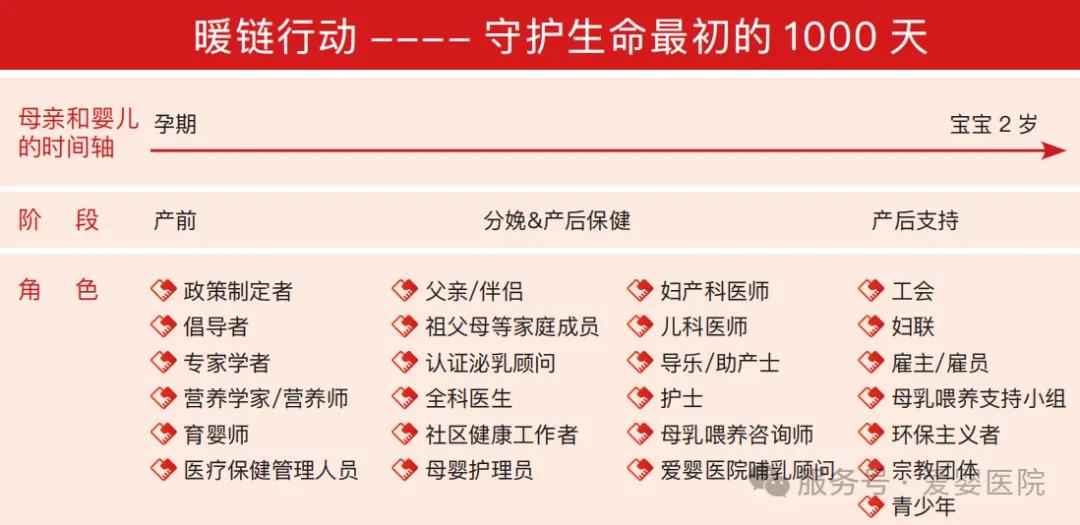 “暖鏈”行動是一項(xiàng)保護(hù)、促進(jìn)和支持母乳喂養(yǎng)的全球性行動,倡導(dǎo)以母親和嬰兒為核心,遵循生命最初1000天的時(shí)間軸,所有支持母乳喂養(yǎng)的醫(yī)務(wù)人員及社會各界,都是暖鏈中的一環(huán),通過各環(huán)節(jié)之間的協(xié)作,為母嬰家庭傳遞一致的信息并提供支持措施,幫助母親和嬰兒獲得持續(xù)的、滿意的、有效的母乳喂養(yǎng)體驗(yàn)。