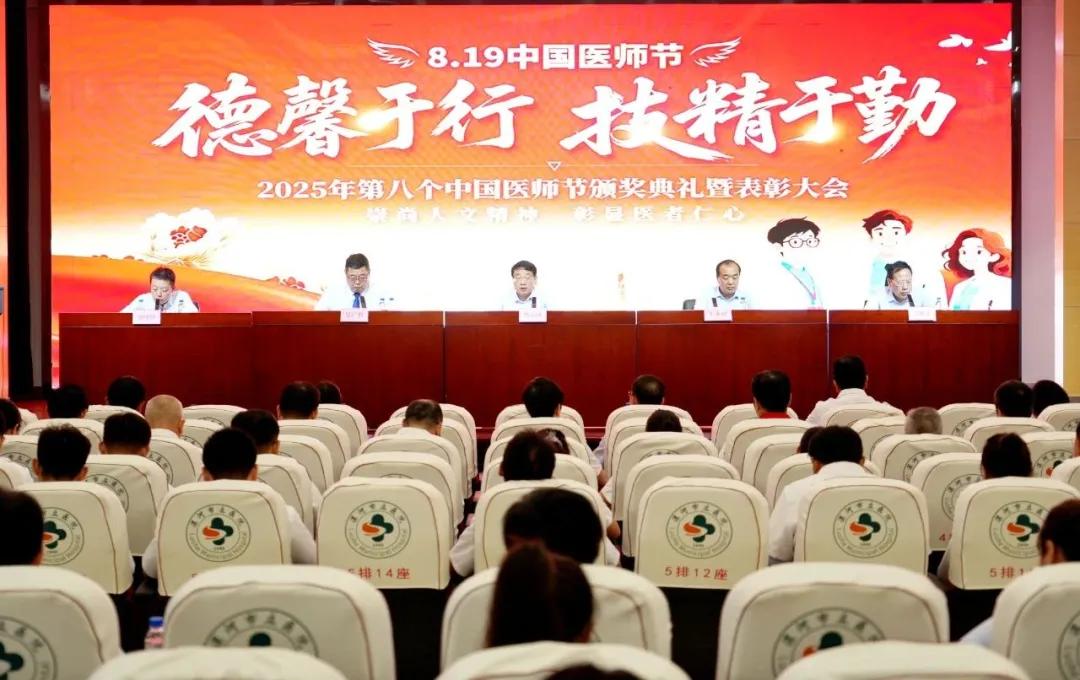 2025年8月19日是第八個中國醫師節,主題是“德馨于行 技精于勤”。為慶祝第八個中國醫師節,向廣大醫師致以崇高的敬意,展示優秀醫師的風采,8月17日上午,漯河醫專二附院(漯河市骨科醫院、漯河市立醫院)在門診樓501會議室舉辦慶祝第八個中國醫師節頒獎典禮暨表彰大會。院領導柴運洪、王齊超、吳廣良、曹鵬克、劉國鋒出席會議,全院中層干部及醫師代表參加。