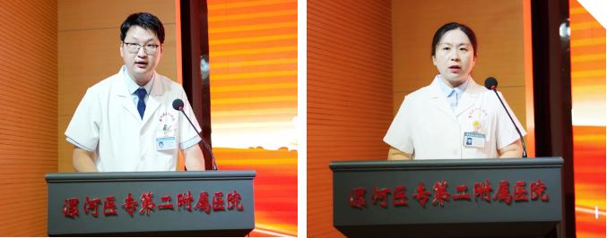 會上,創傷骨科二病區科吳大龍和急診醫學科王旭光兩位優秀青年醫師代表分享了各自在臨床工作中的突出事跡和經驗。他們用真實的事例,生動地講解了工作中的點滴,分享了自己的從醫經歷和感悟,表達了愛崗敬業、德業兼修、無私奉獻的個人信念,表示將始終用自己的實踐和付出來詮釋“健康所系、生命相托”的責任和信賴。優秀醫師代表們真誠的講述令在場醫務人員深受感動,大家紛紛表示,將繼續努力,不斷提高醫療技能和服務水平,為人民群眾的健康事業繼續貢獻自己的力量。