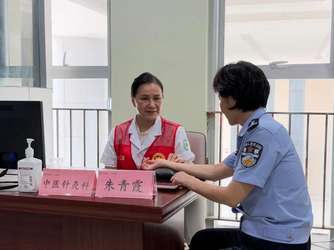 8月18日下午,市二院中醫(yī)針灸科主任朱青霞帶領(lǐng)10余名科室專家、志愿者走進市公安局,開展專場義診活動。作為醫(yī)院“中醫(yī)藥文化走進機關(guān)”系列活動的重要一環(huán),此次服務(wù)精準對接公安民警輔警的職業(yè)健康需求,將中醫(yī)特色診療送到平安守護一線。