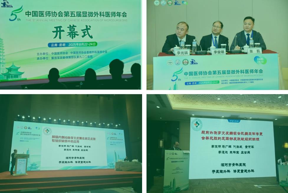 春城昆明,繁花似錦,群賢畢至。中國醫(yī)師協(xié)會第五屆顯微外科醫(yī)師年會于8月22日至8月24日在美麗的春城昆明召開,漯河醫(yī)專二附院(漯河市骨科醫(yī)院、漯河市立醫(yī)院)手顯微外科李俊明教授團隊受邀參加本次會議。本次會議以“精準顯微外科,創(chuàng)新融合發(fā)展”為主題,共同探討顯微外科技術(shù)的最新進展、臨床經(jīng)驗的深度分享以及未來發(fā)展的戰(zhàn)略方向。
