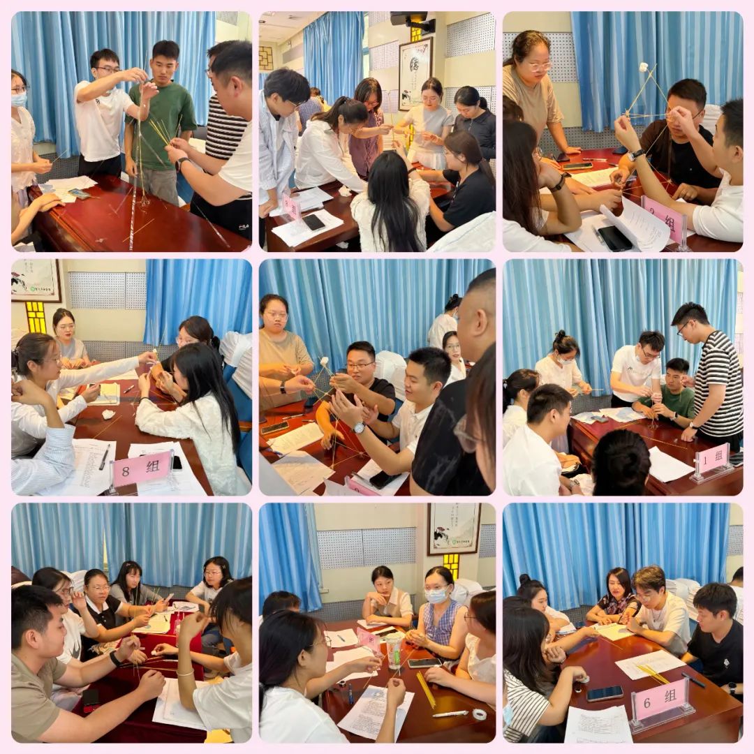 “團結協(xié)作”互動游戲:以14根意大利面、一個棉花糖、一卷膠帶為道具,將道具組合到一起做成一個模型固定到桌子上,哪個團隊的模型最高最結實,哪個團隊獲勝。游戲過程中,大家相互配合、彼此鼓勁,從生疏到默契,從緊張到從容,在歡聲笑語中打破了陌生壁壘。楊軼不時為大家加油,告誡大家不能靠個人的英雄主義和單打獨斗,通力合作才能出結果,團結才能共贏?,F(xiàn)場“醫(yī)院大家庭”的溫馨氛圍愈發(fā)濃厚。直至中午12點多,大家還意猶未盡。