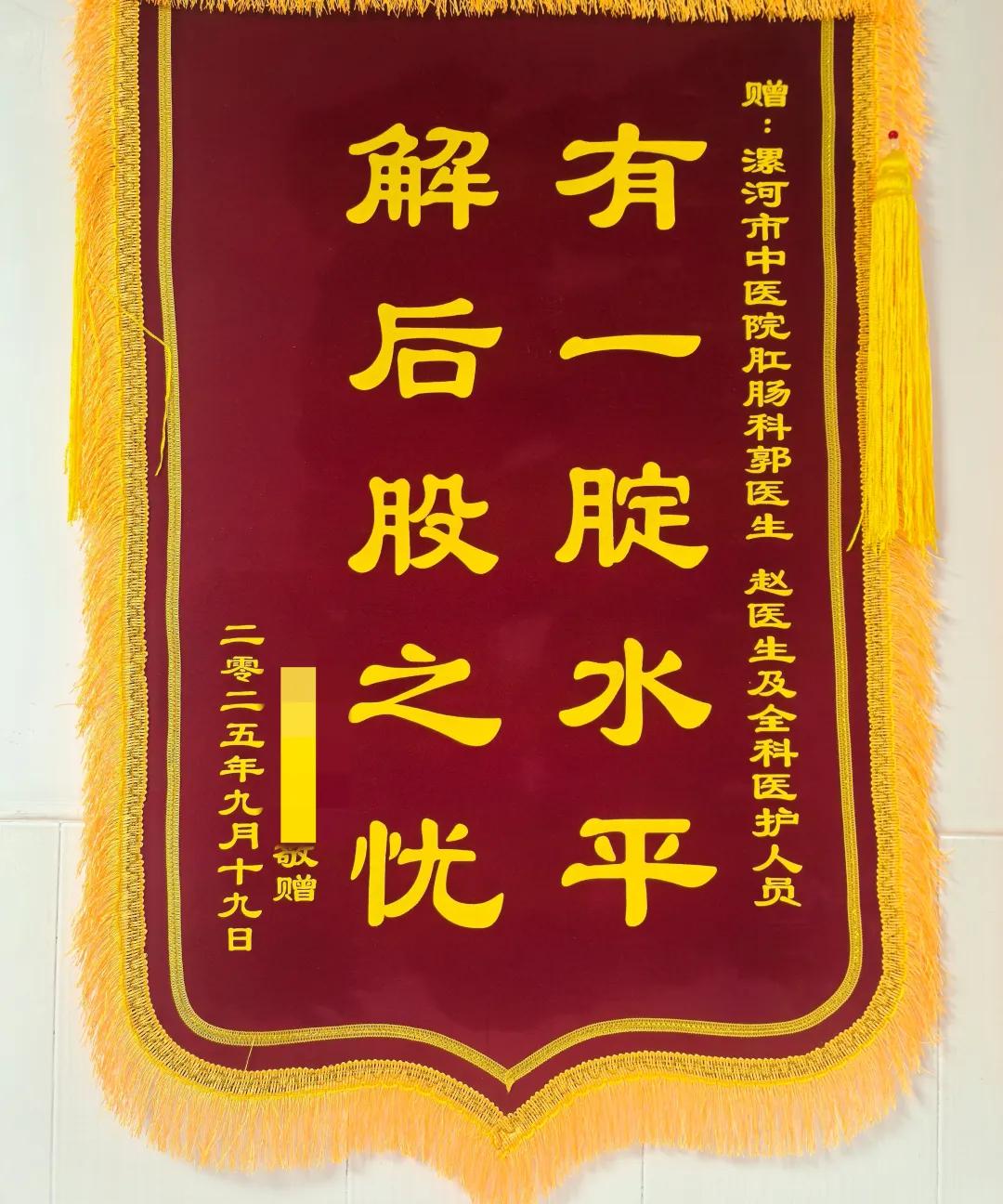 這一面面錦旗是患者的感謝,更是醫(yī)患同心的寫照。未來,漯河市中醫(yī)院肛腸科將帶著這份認(rèn)可持續(xù)精進(jìn),以更優(yōu)質(zhì)的服務(wù)為患者解決 “難言之隱”,守護(hù)大家的肛腸健康。(肛腸科 高志慧  趙蕊)