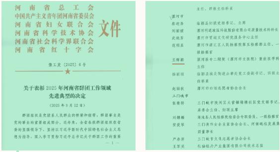 為表彰先進(jìn)、樹立榜樣,進(jìn)一步激勵(lì)廣大婦女奮進(jìn)新征程、建功新時(shí)代,為奮力譜寫中原大地推進(jìn)中國式現(xiàn)代化新篇章作出新的更大貢獻(xiàn),省總工會(huì)、團(tuán)省委、省婦聯(lián)、省科協(xié)、省社科聯(lián)、省紅十字會(huì)決定,授予60個(gè)單位、200名同志河南省三八紅旗獎(jiǎng)。漯河醫(yī)專二附院(漯河市骨科醫(yī)院、漯河市立醫(yī)院)重癥醫(yī)學(xué)科主任王鮮穎榮獲“河南省三八紅旗獎(jiǎng)”先進(jìn)個(gè)人稱號(hào)。