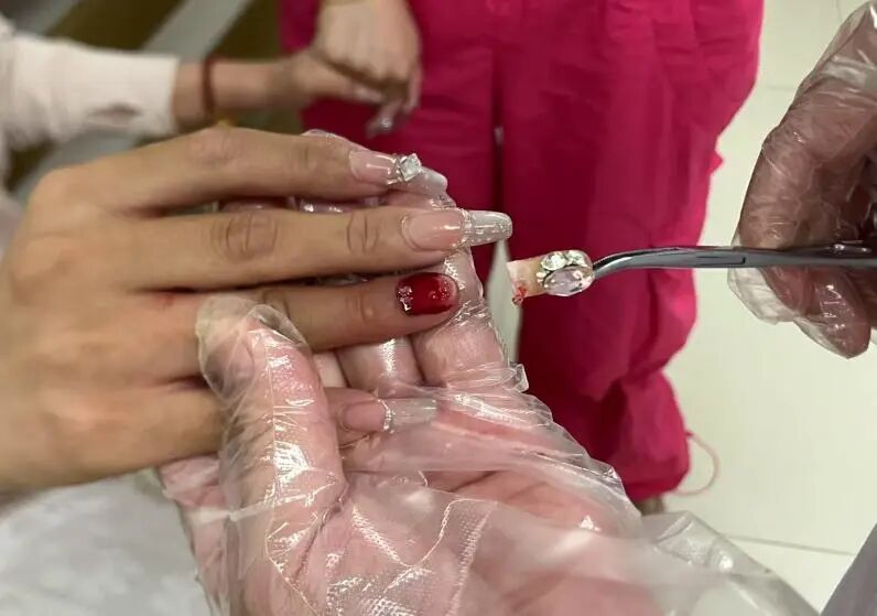 市二院顯微外科、燒傷整形科主任沈衛軍介紹:“近兩周以來,科室已接診5例因美甲導致甲床分離、感染等問題的患者。”沈主任分析,多數患者因長期美甲致使指甲變薄、質地變脆,而過長或粘貼延長甲更如同加長了“杠桿”,即便輕微外力也可能導致甲板整體剝脫。此外,也有部分患者是在美甲過程中,由于操作不正當,或者消毒不徹底,引發指甲感染、化膿甚至發出異味等并發癥。