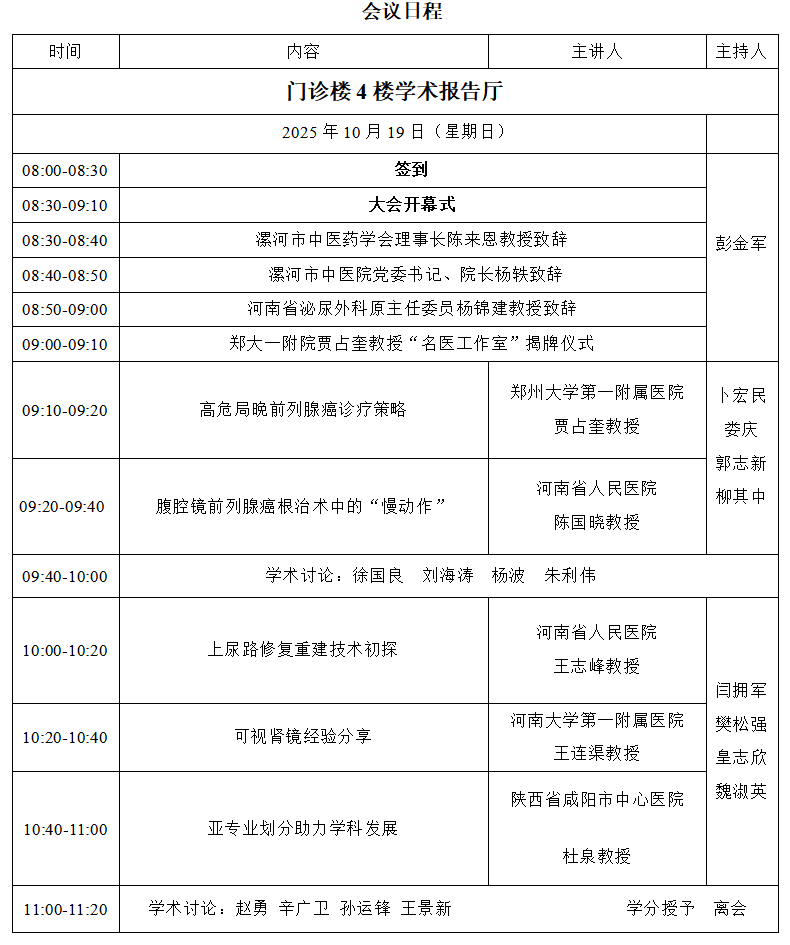 【學術預告】10月19日,漯河市中醫藥學會中西醫結合泌尿外科2025年學術年會暨泌尿系結石中西醫結合治療新進展研討班