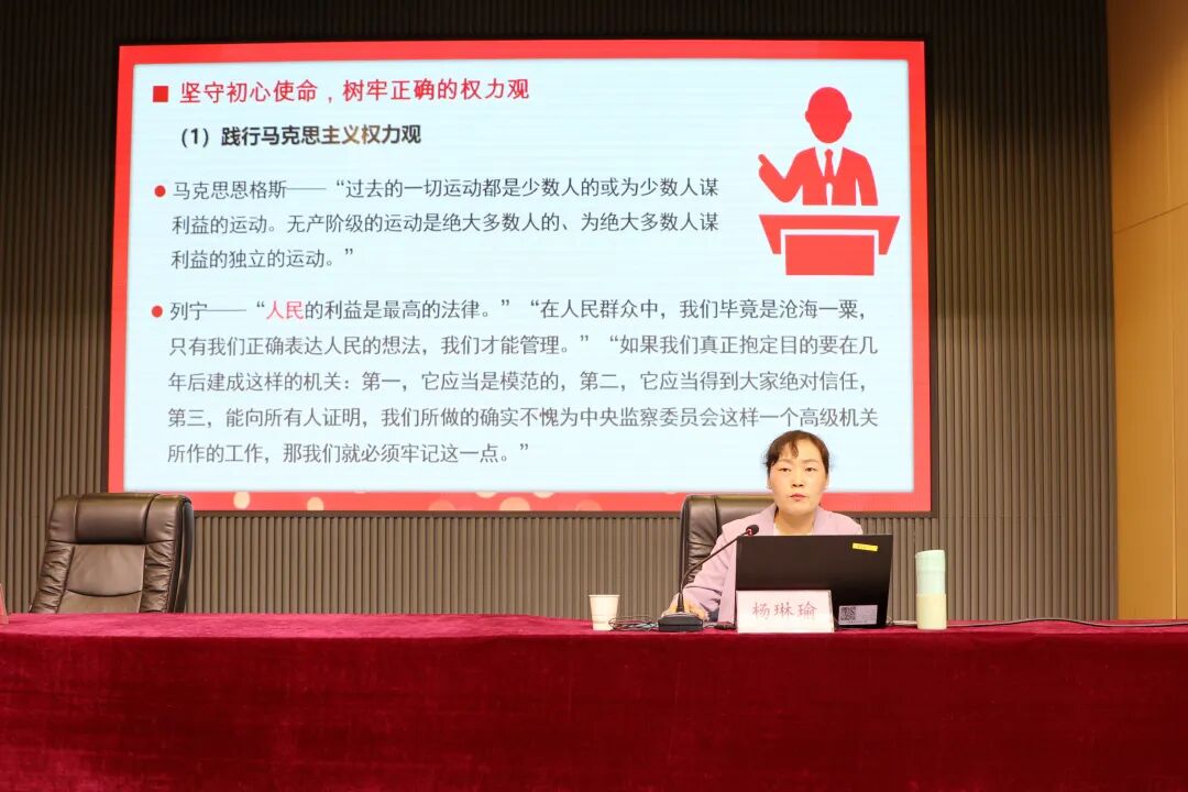 楊琳瑜以《鍥而不舍落實中央八項規(guī)定精神 牢固樹立正確的權力觀政績觀事業(yè)觀》為題,從堅守初心使命,樹牢正確的權力觀;堅持為民造福,樹牢正確的政績觀;堅定實干擔當,樹牢正確的事業(yè)觀三個方面,為與會人員帶來了一場既有理論高度又有實踐指導意義的專題輔導。
