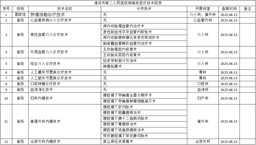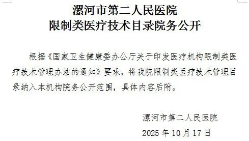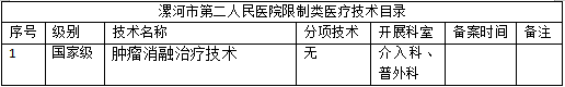 【公示】漯河市第二人民醫院限制類醫療技術目錄院務公開
