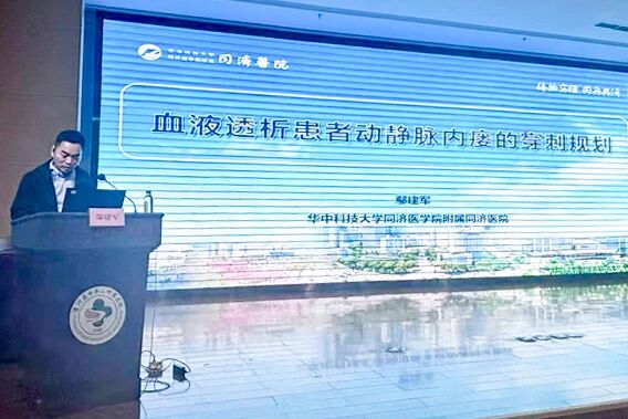 會議特邀湖北省護理學會血液凈化護理專業委員會主任委員,華中科技大學同濟醫院血液凈化室護士長鄢建軍圍繞《血液透析患者動靜脈內瘺的穿刺規劃》,系統闡述了如何從血管評估、穿刺點選擇、到長期穿刺方案的制定,通過科學的規劃最大限度地保護血管,為延長患者“生命線”的壽命奠定了堅實基礎。由漯河市中心醫院血液凈化室護士長周瑾與郾城區人民醫院血液凈化室護士長張娟主持會議。