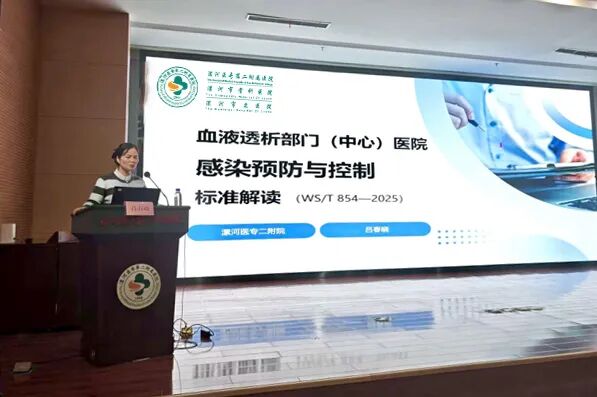 規范與賦能并重,夯實安全基石。 在質量安全層面,漯河醫專二附院血液凈化室護士長呂春曉對《血液透析部門(中心)醫院感染預防與控制標準》進行了權威解讀,從建筑布局、人員管理、操作流程、監測要求等多個方面,深入講解了標準的核心要點,為各醫療機構落實規范化管理、確保患者安全提供了依據。由漯河市婦幼保健院血液凈化室護士長劉曉靜與臨潁縣人民醫院血液凈化室護士長陳曉夢主持會議。