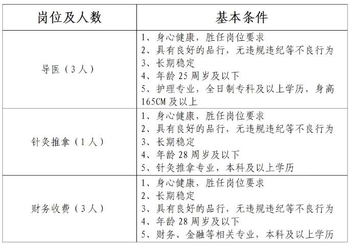 漯河市中醫院根據工作需要現委托第三方對導醫、針灸推拿、財務收費輔助崗位人員實施勞務派遣。現公告如下:
