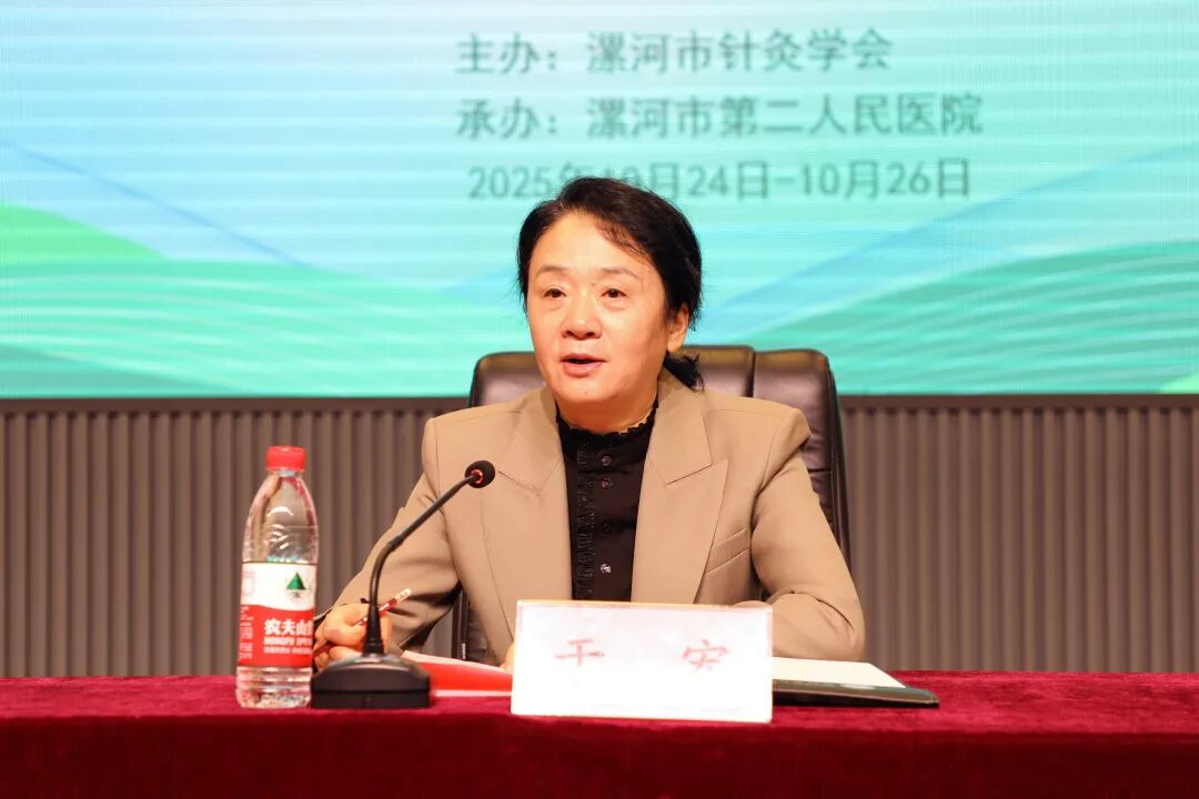 黨委副書記、院長胡海英在致辭中向參會領導及與會專家表示熱烈歡迎,并對他們不辭辛勞來漯傳經送寶表示感謝。她表示,市二院始終重視中醫藥特色發展與中西醫融合創新,作為全國綜合醫院中醫藥示范單位,我們始終將中醫藥事業發展作為醫院高質量發展的核心戰略之一,深耕細作、久久為功,打造了一批省、市級重點專科與特色專科,其中中醫針灸科作為河南省重點中醫專科,已然成為醫院中醫藥事業的閃亮名片與核心力量。