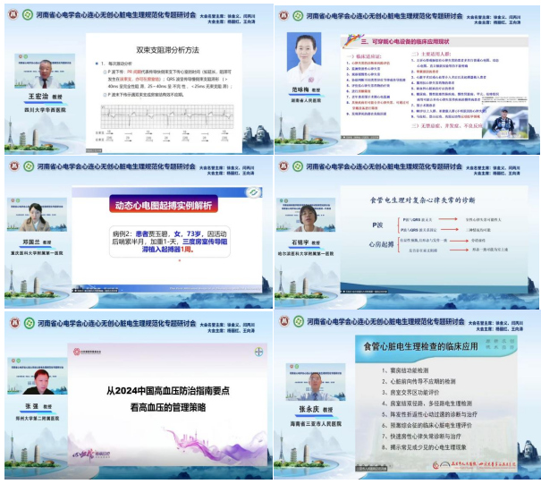 在隨后的學術講座中,河南省人民醫院徐金義、楊麗紅、王慶義、李涵,漯河市中醫院張茜、陳云、王向濤分別授課,題目為《經典心律失常的規范化診斷與精要解讀》、《心血管特殊人群運動試驗的適應證拓展與安全性保障》、《心房波的“放大鏡”--深度解讀食管心電圖》、《肺功能檢查的規范化臨床應用與報告解讀》、《平板運動試驗的臨床應用》、《臨床常見危急值心電圖》、《平板運動試驗的風險及處理》等學術講座。會場氣氛熱烈,學術氛圍濃厚。