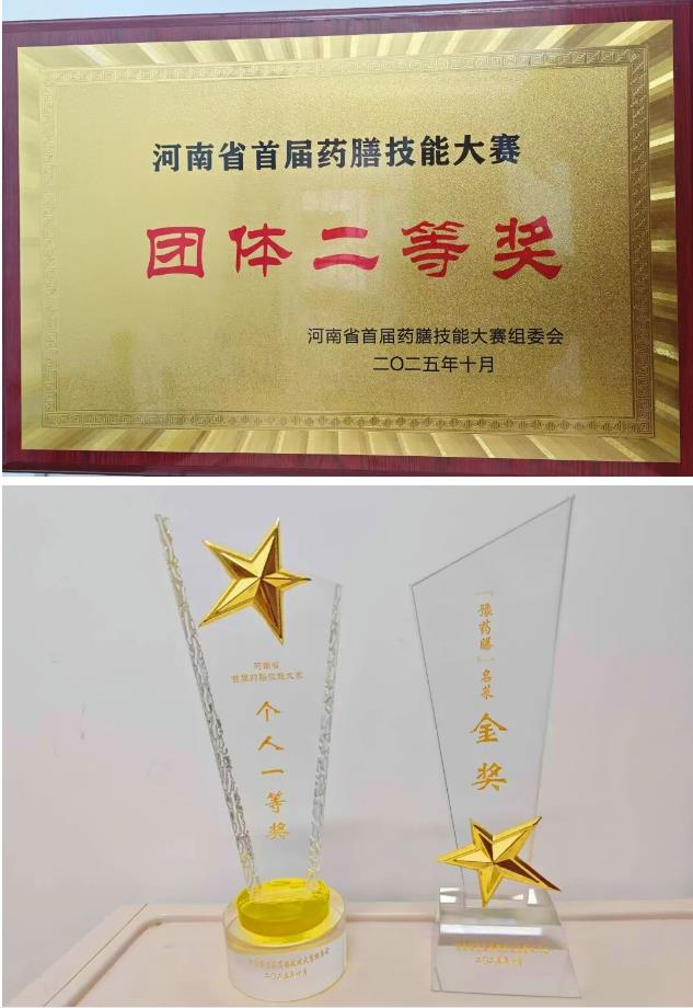 2025 年10月22日至24日,河南省首屆藥膳技能大賽在南陽市醫圣文化園隆重舉辦。在這場高規格賽事中,漯河市中醫院參賽隊伍憑借深厚的中醫藥底蘊與精湛的烹飪技藝嶄露頭角,取得優異成績,摘得數座獎杯,成為賽事中的最亮眼存在。藥學部白冰制作的金湯萸杞護肝盞憑借獨特的創意及絕佳口感與科學的養生功效,脫穎而出,榮獲 “豫藥膳名菜” 金獎第一名,成為本次大賽的焦點之作。