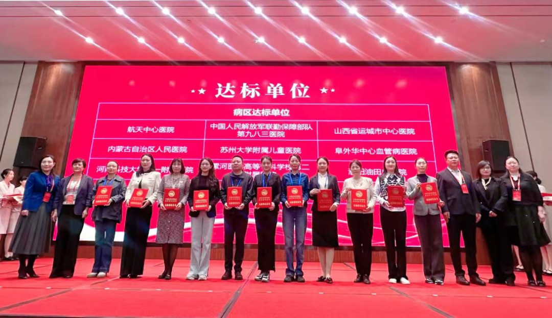 在備受矚目的授牌儀式環節,大會正式公布了《病區護理人文關懷管理規范》團體標準第二批貫標驗收評審結果,并現場為達標單位授牌、頒發證書。漯河醫專二附院(漯河市骨科醫院、漯河市立醫院)憑借在人文護理領域扎實的工作成效和卓越的服務水平,成功通過評審,被正式授予“《病區護理人文關懷管理規范》團體標準貫標達標單位”。這一沉甸甸的牌匾與證書,不僅是一份崇高的榮譽,更是對漯河醫專二附院長期踐行“以患者為中心”服務理念、深耕人文護理建設的高度肯定與權威認可。