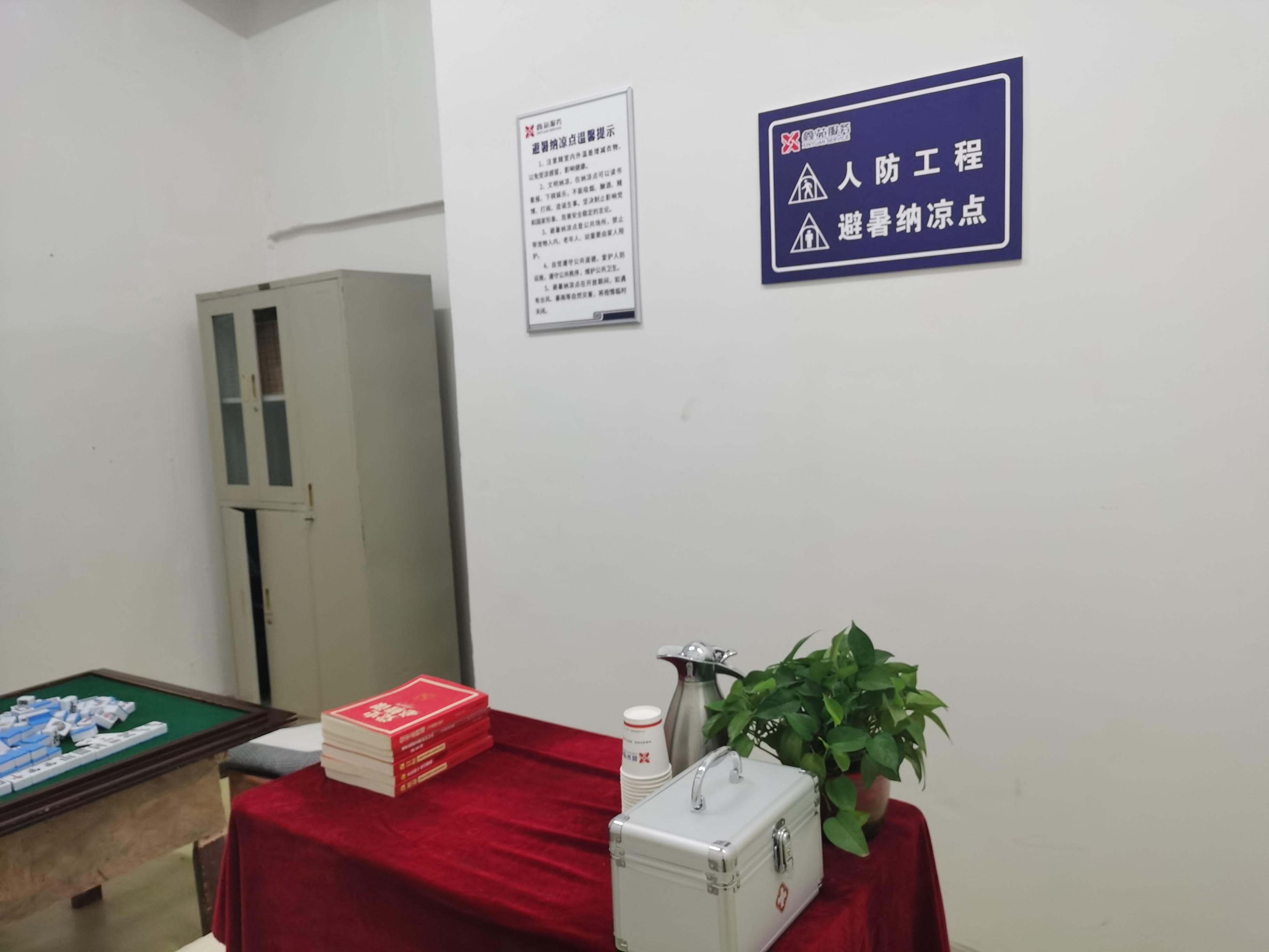 場所安裝大功率空調設備,營造清涼愜意的環境;設置飲水區域,提供免費的冷、熱水,配備充電插座,方便市民為電子設備充電;設有急救箱,配備藿香正氣水、清涼油、體溫計等常用防暑和急救藥品,隨時應對可能出現的身體不適情況。此外,還擺放了涵蓋黨史、科普、人防等方面的書籍和報刊雜志,供市民在納涼時閱讀學習,充實精神世界;準備象棋、跳棋、麻將等娛樂用品,為市民提供休閑娛樂選擇,增進彼此之間的交流互動。