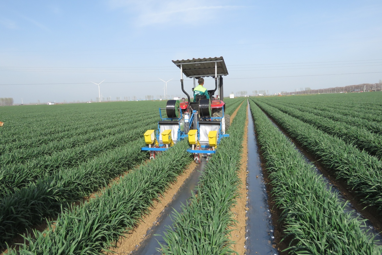 種植時采用5G北斗導航無人駕駛機械進行辣椒直播,在直播時播種機直接播種辣椒種子,同時可同步鋪設滴管帶、地膜、下種子、一次成型完成辣椒播種任務,一臺辣椒播種機每天可直播辣椒60畝至70畝,可代替100多人移栽。由于辣椒機械化直播沒有移栽環(huán)節(jié),辣椒根系發(fā)達,植株健壯,防草驅蟲,不容易出現(xiàn)死棵爛苗的現(xiàn)象,明顯減少了農藥和水的用量。每畝7500穴,每穴雙株,每畝可種植辣椒15000株,省時、省力、省工、省錢而且又高產,一般畝產干辣椒800—1000斤,如果管理得當畝產突破1000斤是沒有問題的。