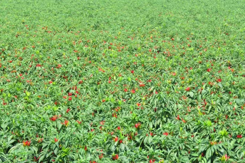 你看看:榮莉萊的辣椒直播大田表現(xiàn)非常的好,縱橫成行,合理密植,通風透光,光合作用強,增產效果明顯,利國利民,一般畝增產都在300斤以上,每畝純收入5000多元,值得在省內外推廣。榮莉萊的這種小麥套種辣椒的種植模式適用于在河南、安徽、山東、河北、天津、陜西、山西、新疆等中北部地區(qū)大面積機械化推廣種植。目前,已經在省內外推廣這種種植模式在10萬畝以上。同時,這種麥椒套種畝產小麥在1000斤以上,既保證了糧食安全,又增加了經濟收入,是今后大面積推廣種植的方向。