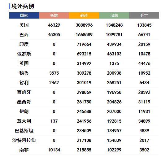 全球范圍內,新冠確診病例較前一日增加172512例,達到11500302例;死亡病例較前一日增加3419例,達到535759例。