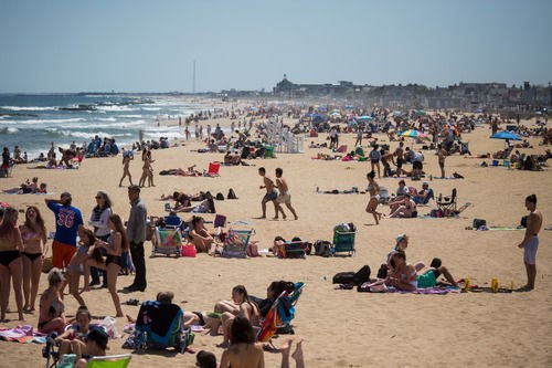 5月16日,人們在美國新澤西州貝爾馬海灘。新華社發(郭克攝)
