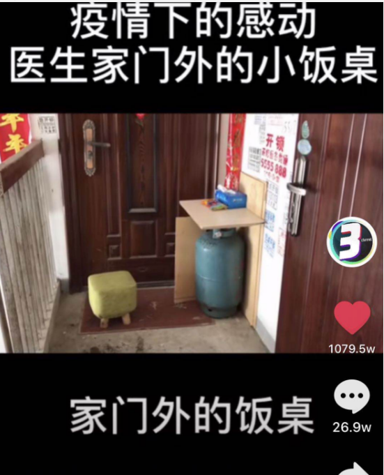 網友感念擺放在家門外的小飯桌,是醫生杜享在生死疫情面前對職業的堅定和操守以及對家人的摯愛和不忍;而依偎門邊、集淚目婆娑萬般鐘愛柔情的妻子,則是對出征丈夫的憐愛、企盼和祝愿。