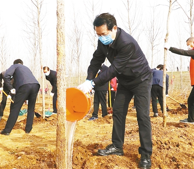 3月12日,市委書記蒿慧杰等同廣大干部群眾一起參加2020年春季義務植樹活動。記者 王慶建 攝