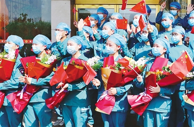市委書記蒿慧杰在歡迎儀式上動情地說,鞭敲金蹬響,齊唱凱歌還。聽到白衣戰士們高唱“五星紅旗迎風飄揚,勝利歌聲多么嘹亮”,我們更加深切地體會到,在抗擊災難中黨的偉大、祖國的偉大、人民的偉大。看到抗疫勇士們從最前沿勝利歸來、平安到家,我們和你們的家人一樣,非常高興。我代表市委、市人大、市政府、市政協和市疫情防控指揮部,向你們以及支持你們奔赴抗疫第一線的家人表示衷心的感謝和崇高的敬意!代表全市人民為你們點贊,歡迎你們回家!