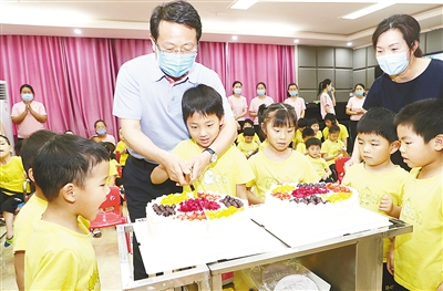 暖暖的祝福,別樣的節(jié)日。市兒童福利院,孩子們精心制作的美工作品把大廳裝扮得格外美麗,蒿慧杰認(rèn)真觀看美工作品,并聽取工作人員關(guān)于疫情期間孩子們學(xué)習(xí)生活情況的介紹。走進(jìn)音樂教室,蒿慧杰一邊親切地問候孩子們,一邊送上節(jié)日禮物。孩子們十分開心,高興地表演起朗誦和古箏節(jié)目《三字經(jīng)》,臉上洋溢著幸福的笑容。隨后,蒿慧杰和孩子們一起分享蛋糕,并合影留念。蒿慧杰叮囑有關(guān)負(fù)責(zé)同志,要用心用情做好疫情防控常態(tài)化條件下兒童福利院的各項(xiàng)工作,讓孩子們健康快樂成長。