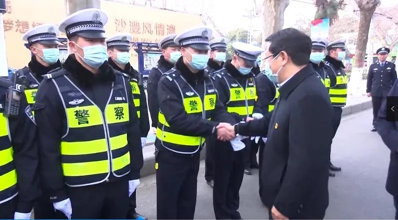在黃河路與泰山路交叉口,蒿慧杰、劉尚進看望了執勤交警、巡警,向他們致以新春問候,祝大家新年快樂,生活幸福,萬事如意。蒿慧杰說,春節是中華民族最重要的傳統節日,是闔家團圓的日子,也是人流、車流比較集中的時候,大家在春節期間依然堅守執勤崗位,擔負著繁重的工作任務,十分辛苦,希望大家強化責任擔當,做好執勤工作,在全力保障交通暢通、群眾出行安全的同時,以我市成功創建全國文明城市為契機,進一步做好文明勸導工作,引導市民養成文明健康出行習慣,為建設更高質量更高水平的文明城市作出更大貢獻。