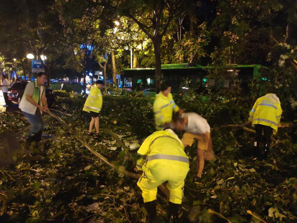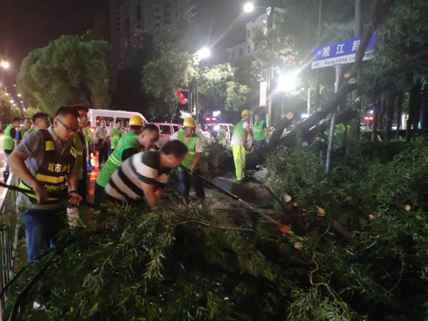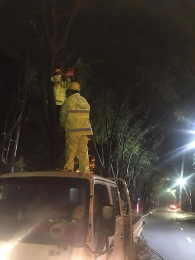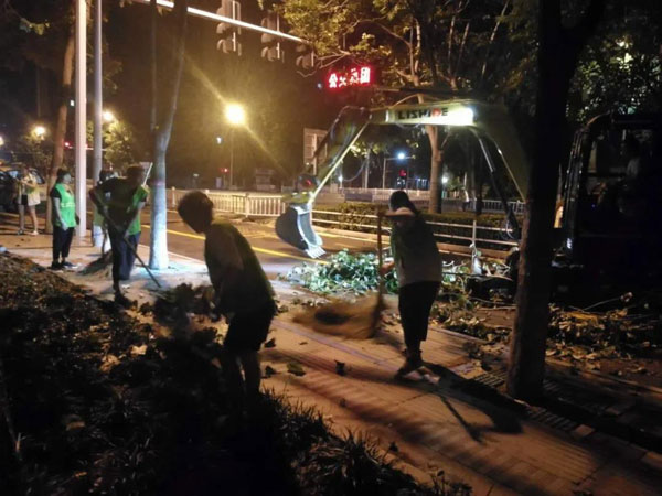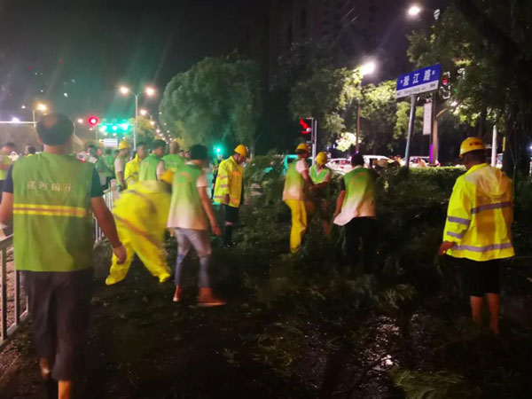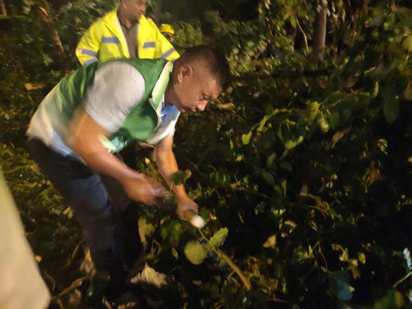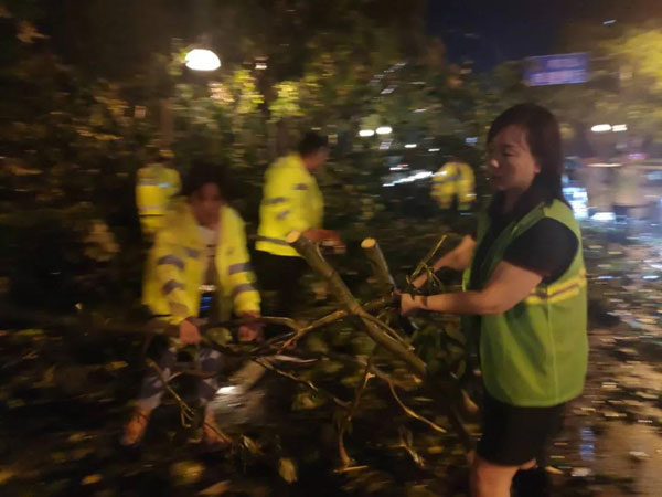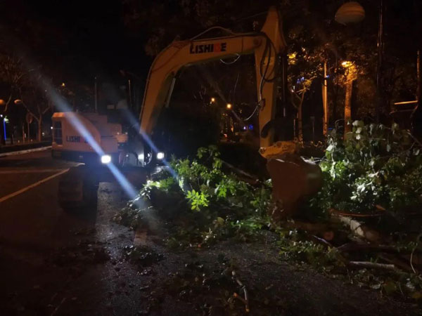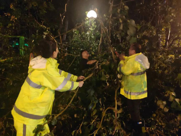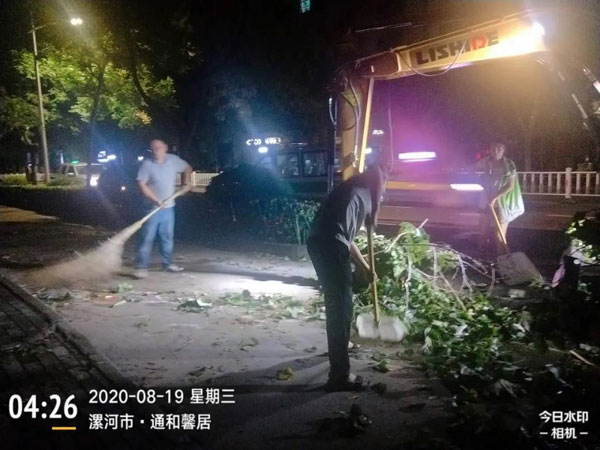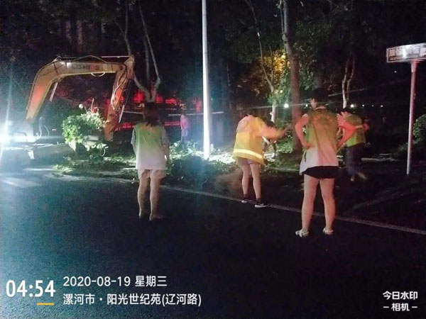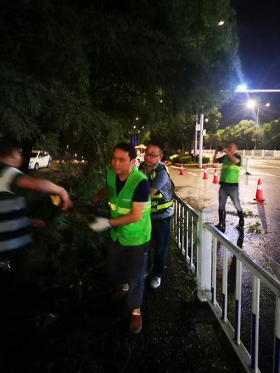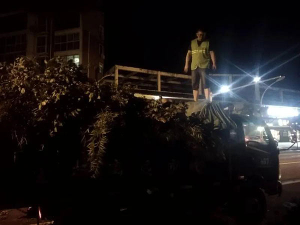 又是一個不眠夜,園林搶險硬核力量,彰顯部門責任擔當。截至8月19日早上5點多,共搶險倒伏樹木120余株,大型斷枝360余處,小型斷枝800余處,出動車輛60余臺次,出動人員200余人次。
