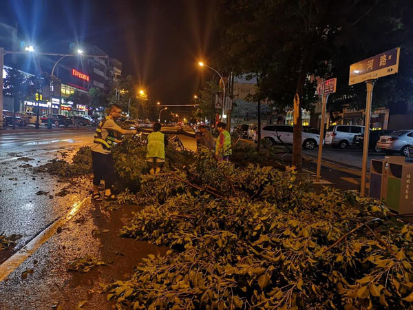 經過一夜奮戰,影響交通的倒伏樹木已基本清理完畢,道路恢復暢通,斷枝清運、隱患排查仍在緊張進行中。