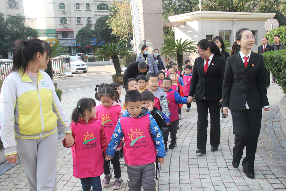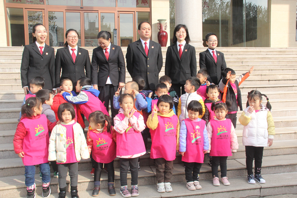 11月19日上午,陽光雨露鴿子樹班21個小朋友在老師的帶領下,走進了漯河市中級人民法院,零距離認識了法官、了解了法院,在幼小的心靈種下了“法”的種子。