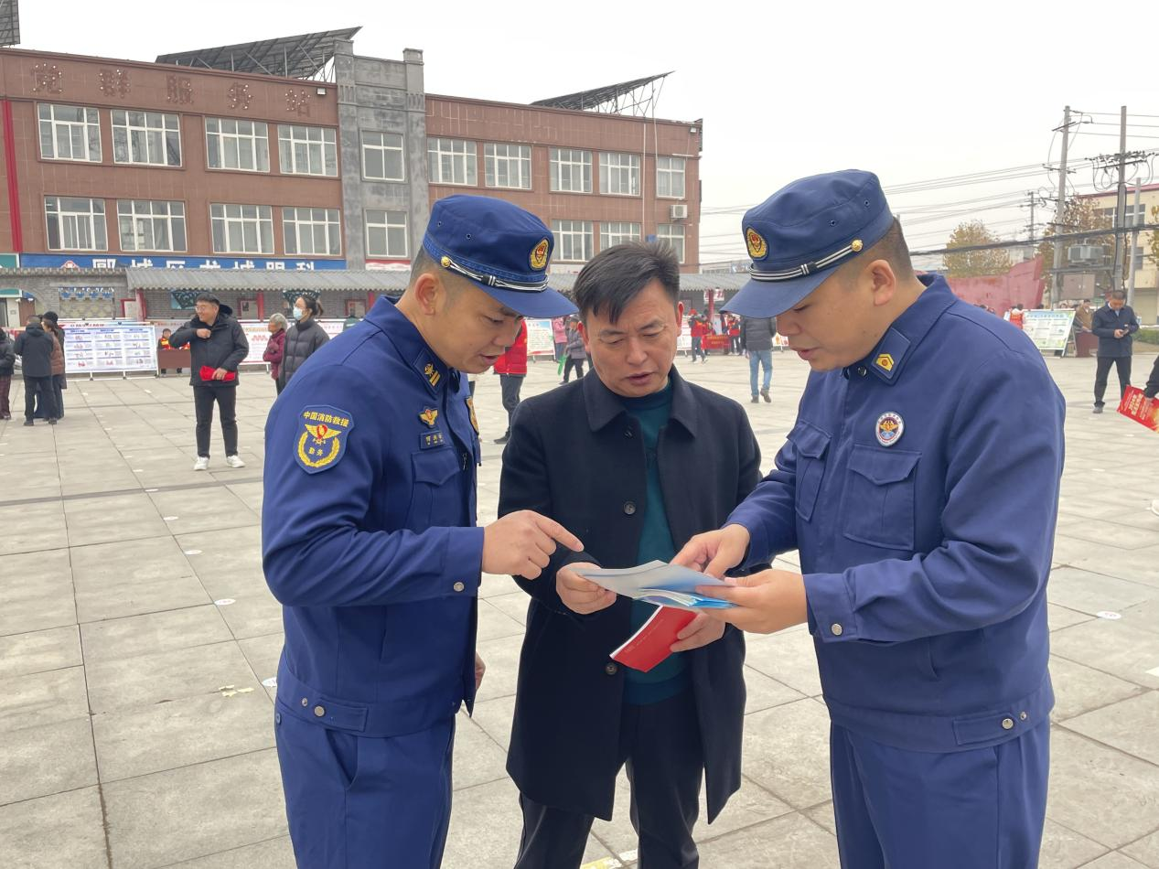 龍城鎮黨委書記李志華向消防救援人員了解相關法規