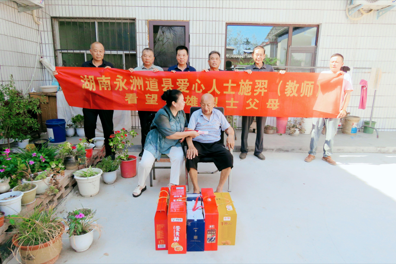 湖南道縣愛心人士施羿看望慰問英雄李海欣烈士的父親李銀秀