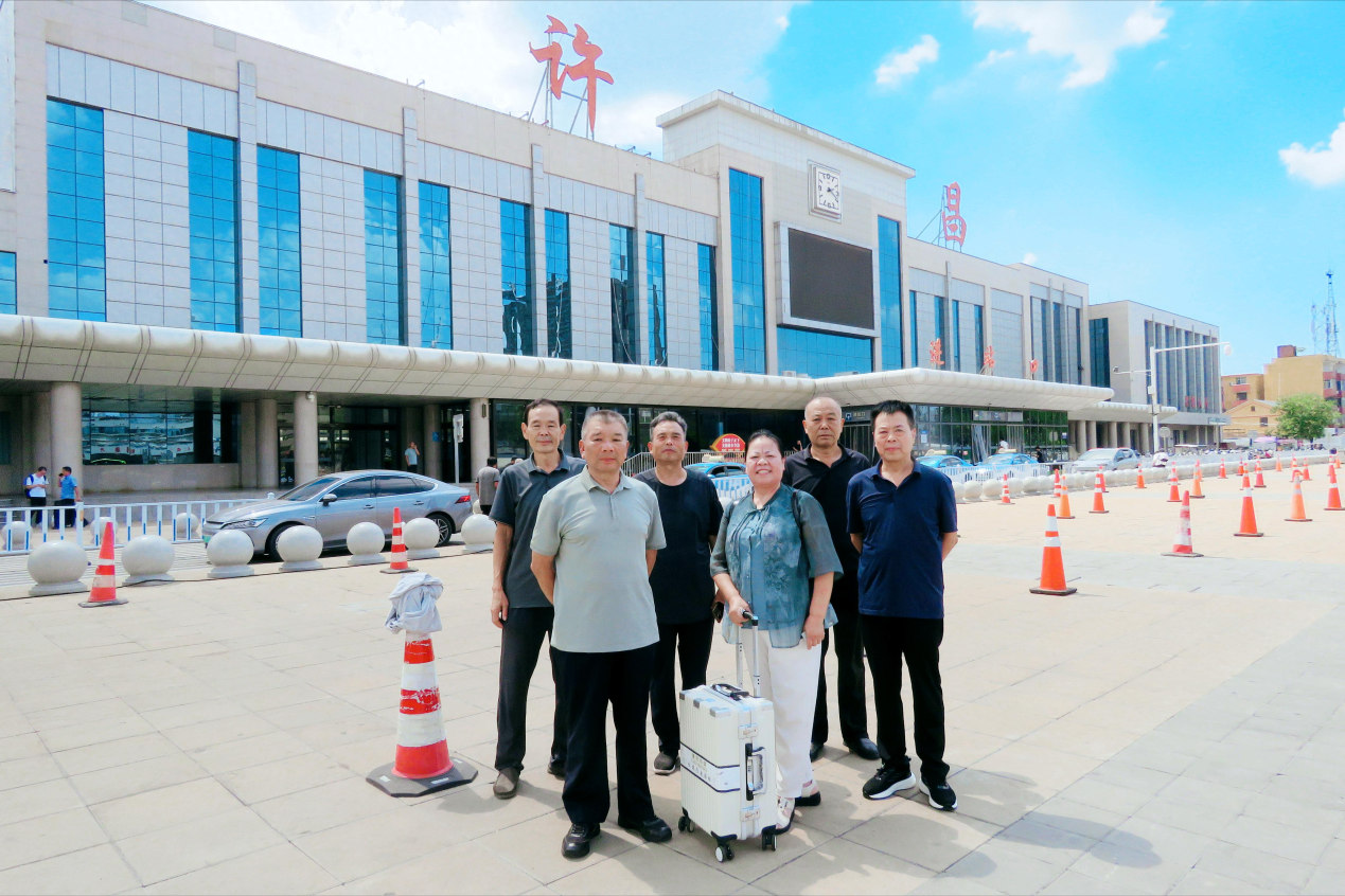 圖為2025年7月29日下午2點30分,湖南省永州市道縣退休女教師\愛心人士施羿與戰友們在許昌市火車站合影留念。