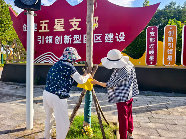 市園林中心職工懸掛粘蟲板防治白粉虱