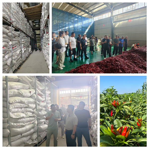 第一站實地參觀“子彈頭”、“三櫻椒”品種辣椒的生長情況,學習“麥椒套種”種植技巧,詢問專家種植模式、病蟲害防治和畝產情況。王崗鎮技術人員毫無保留地分享了田間管理的關鍵細節與多年積累的實用經驗,通過細致觀摩和現場講解,系統了解了這一高效種植模式的核心環節——從精準選種、科學播種、病蟲防治到高效收獲、專業存儲及暢通銷售的全鏈條操作流程。第二站實地參觀了王崗鎮辣椒儲存專用冷庫,通過查看冷庫建設分區和分揀情況,詳細了解辣椒打包存儲技巧和市場托管銷售等關鍵環節,為種植大戶安心發展種植注入“強心劑”。