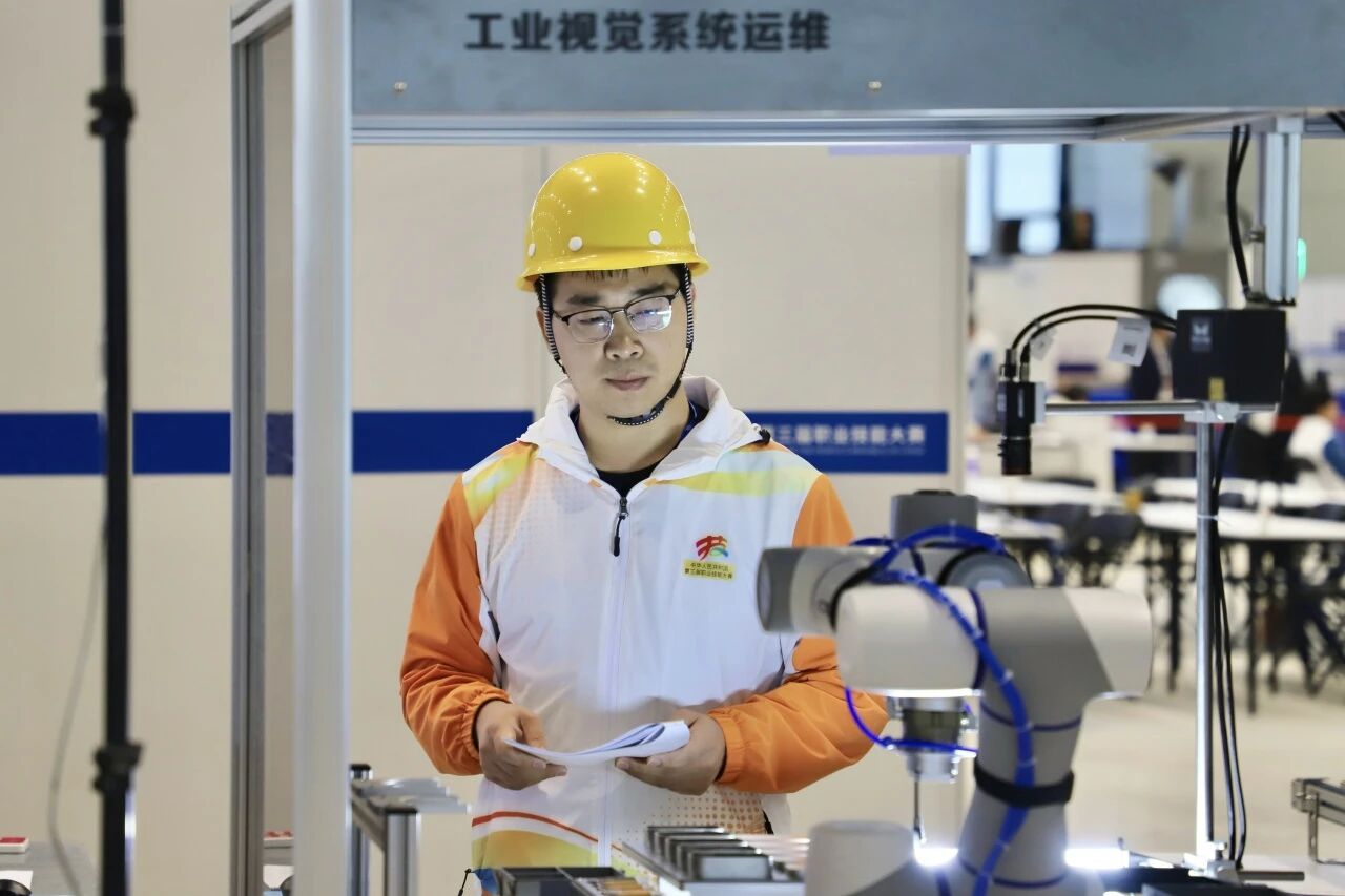 中華人民共和國第三屆職業技能大賽閉幕式上,自主移動機器人(世賽選拔項目)金牌獲得者楊奇瑞、介明鑫,工業視覺系統運維(國賽精選項目)金牌獲得者王華磊,機器人系統集成(世賽選拔項目)銀牌獲得者彎有道、王永康上臺領獎。