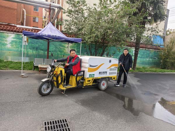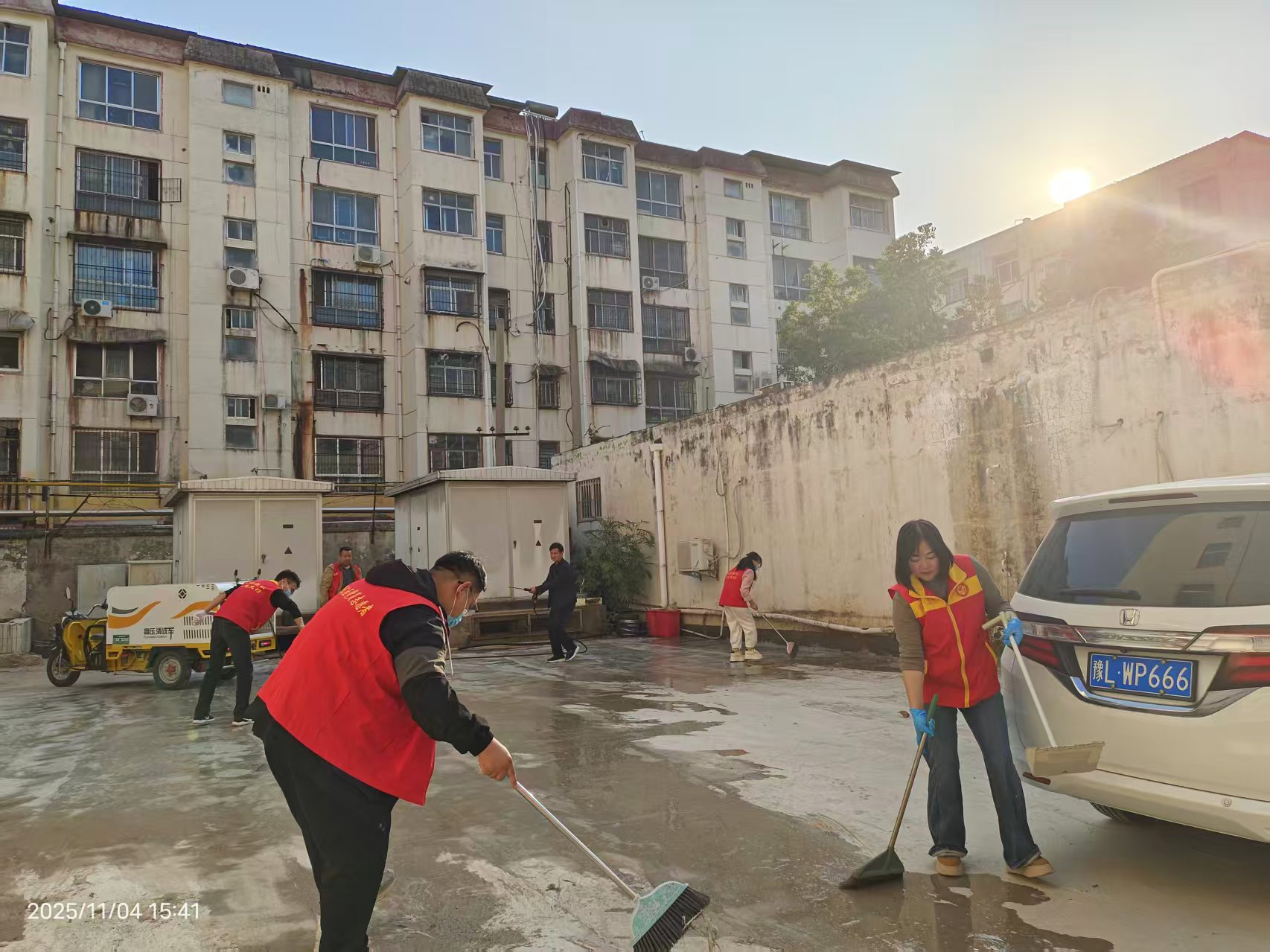 公共區域的“煥顏洗禮”:高壓水槍發出有力的轟鳴,水流所到之處,地面沉積的污漬、苔蘚被一掃而光。志愿者們揮舞著掃帚,配合水槍沖洗,將淤泥和積水推向下水道。沖洗過的地面露出了原有的顏色,在陽光下泛著濕潤的光澤,仿佛為小區進行了一次徹底的“潔面”。