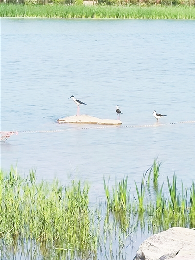 “黑翅長腳鷸對生存環境要求高,喜好棲息于開闊平原草地中的湖泊、淺水塘和沼澤地帶。它們是水生環境變化的指示性動物之一,具有重要的生態價值。”梁新星說。