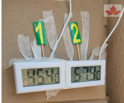 夏浩桐同學告訴記者:“去年秋天,我們觀賞紅楓葉時,偶然發現路兩側的五角楓樹干出現了蛻皮壞死現象。寒假期間,我們又對整條路的五角楓進行了全面觀察和統計,發現壞死率竟然超過了65%。于是,我們就這個現象與學校張真老師進行了討論。張老師非常支持,很快便成立了由她和我們四位學生組成的‘五角楓實驗小組’。”“我們小組多次實地調查、現場測試后發現,在夏季太陽直射下,五角楓樹皮西側和南側的溫度差異巨大。比如現在下午3點,我們測得南側(1號線)電子測溫計顯示45.4℃,而西側(2號線)測溫計則顯示高達57.9℃,兩側溫差達到了12.5℃。”夏浩桐繼續說道,“我們小組經過多次測試、記錄數據,并查閱了大量資料,還借助了‘豆包’等AI工具進行分析,最終發現了一些資料提到了‘日灼病’,即因太陽輻射溫度過高而導致的植物曬傷。我們認為,這里的五角楓很可能就是患上了日灼病。”