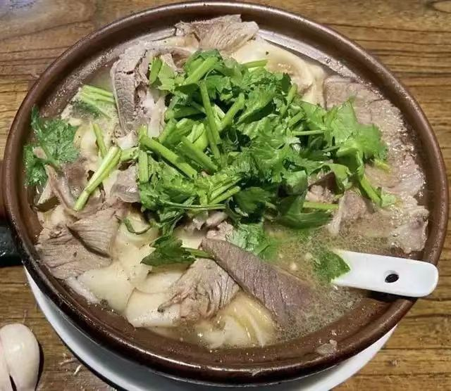 在漯河的美食版圖上,砂鍋燴面的風味坐標星羅棋布。樂山路上的“向陽老牌砂鍋燴面”,如同一位閱盡滄桑的長者,用不變的老味道守護著食客的記憶。而五一路與東大街的煙火巷陌里,幾家老店并肩而立,各自書寫著不同的美食傳奇。“班記砂鍋燴面” 是時光釀造的琥珀。二十多年的光陰,讓這家小店褪去浮華,只剩下最質樸的市井溫度。狹窄的店面里,幾張斑駁的方桌,承載著無數人的深夜慰藉。店家手腳麻利地穿梭其間,吆喝聲、碗筷碰撞聲交織成獨特的韻律。這里沒有花里胡哨的菜單,只專注于燴面與羊肉的純粹。鹵得晶瑩剔透的羊肉,入口鮮嫩無膻;在砂鍋里持續 “修煉” 的面條,愈發筋道爽滑;醇厚的湯底順著喉嚨滑下,暖意從胃底蔓延至全身,仿佛喝下了一整座城市的鄉愁。