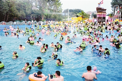 神州鳥園嬉水樂(lè)園內(nèi)人潮涌動(dòng)。